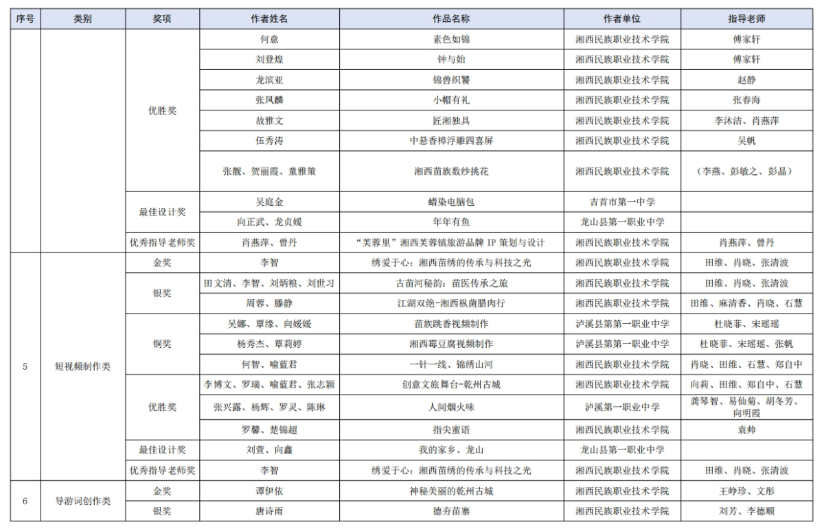 “创意点亮湘西,技艺赋能文旅”文旅创意作品设计大赛获奖名单公示