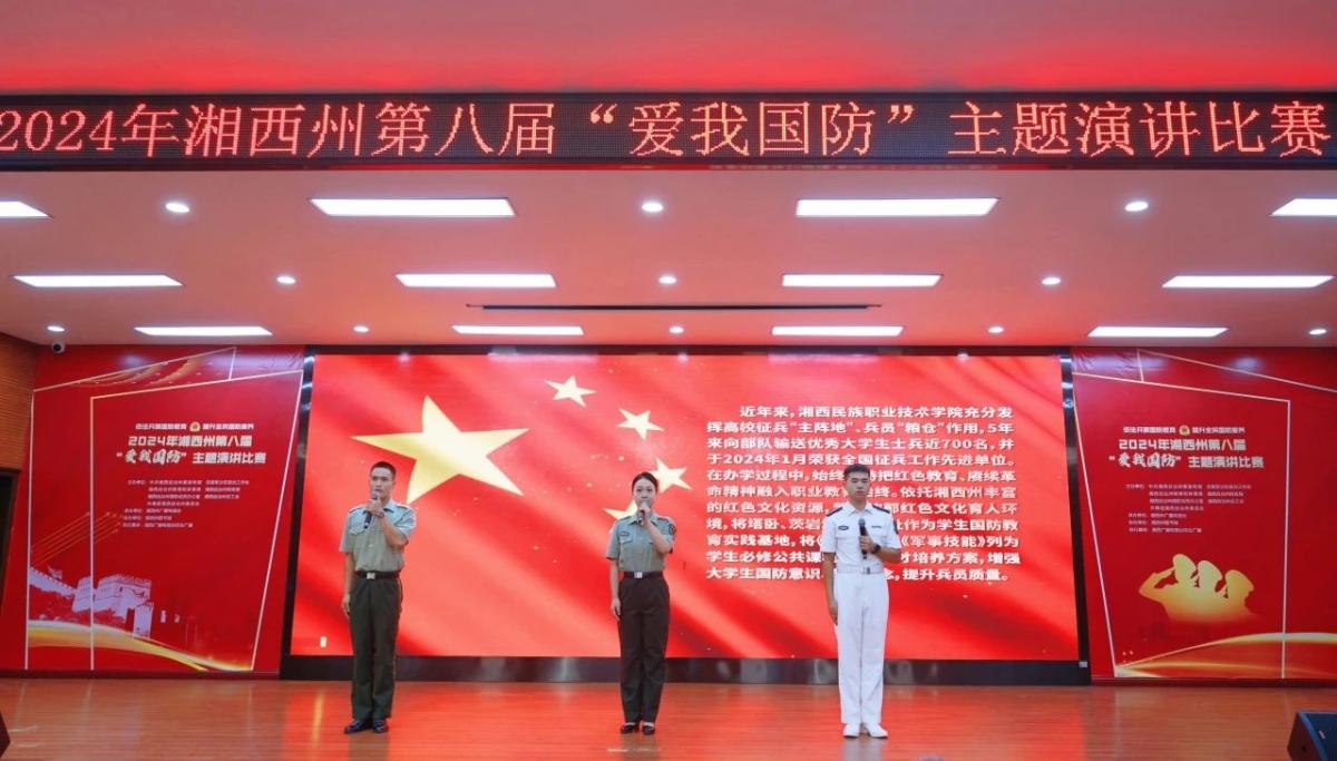 9月12日上午,湘西州第八届“爱我国防”主题演讲比赛决赛在州图书馆报告厅举行。我校彭兴歆老师和黄昊洋、王伟阳同学组成的参赛团队,以第一名的好成绩取得了此次比赛的一等奖,湘西职院获优秀组织奖。