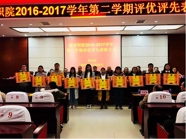 近日,湘西职院在D区多功能报告厅隆重召开了学生表彰大会,学生处和系部相关负责人、关工委老同志以及学生先进集体和先进个人代表参加了本次大会。表彰大会由学生处副处长颜涛主持。