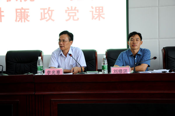 9 月16日 ,湘西职院在学院D区会议室组织举办了 “一把手”上廉政党课活动。学院近200名党员干部认真听取了由院党委副书记、院长李光寒主讲的题为《践行党的群众路线 旨在为民务实清廉》的廉政党课。院纪委书记刘修洪主持会议。