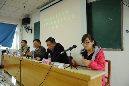 会上,组织人事处副处长王承江作了本期培训工作总结。他认为,本期培训班历时15天,广大学员克服困难,遵守培训纪律,认真听讲,积极参加分组讨论,对党的基本知识有了更加深入的了解,思想上得到进一步提高,培训工作达到了预期目的。经济贸易系唐治霞、应用外语系王小英两位同学作为优秀学员代表分别在会上发言。发言中,她们表达了对参与培训工作的领导、老师的感激之情。并表示,在以后的学习、工作、生活中不会忘记领导和老师的谆谆教诲,严格要求自己,通过不懈努力,争取早日加入党组织。