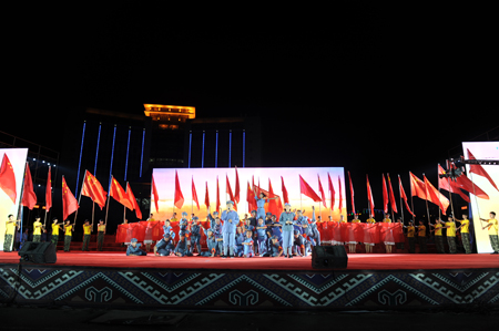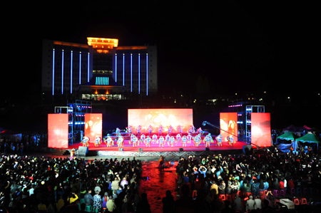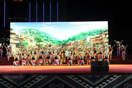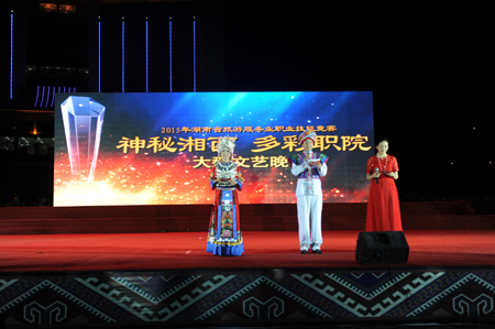 为配合由湖南省人力资源和社会保障厅、湖南省总工会、共青团湖南省委、湖南省妇女联合会、湘西州人民政府主办,湘西职院、湘西州技工学校承办的2015年湖南省旅游服务业职业技能竞赛,10月29日晚19:00,湘西职院组织的大型文艺汇演“神秘湘西 多彩职院”在学院演艺广场隆重举行。省、州相关领导,14个市州代表队的351名选手以及全院教职工共计5千余人观看了演出。