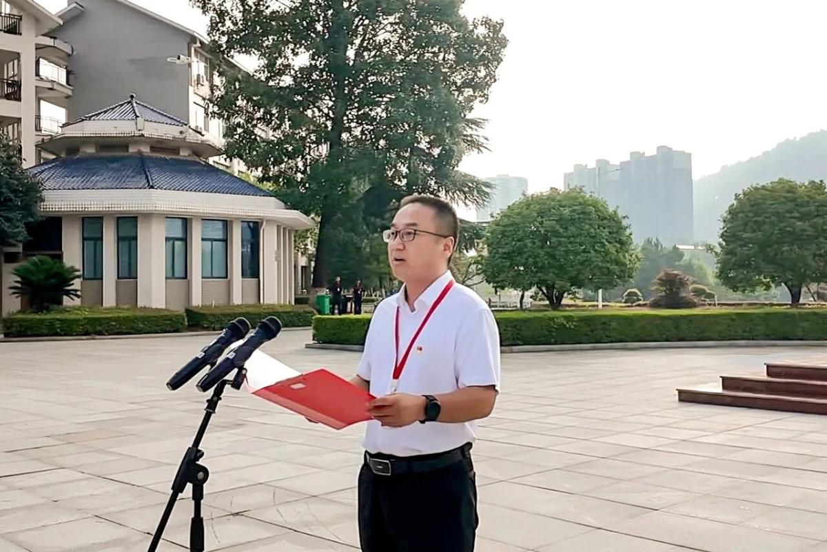 升旗礼毕,谢绍猛强调,全体教育工作者和青年学子要深刻铭记抗战历史,从中汲取奋进力量,在传承伟大抗战精神中开创未来。要将抗战精神转化为坚定理想信念的磐石,筑牢思想根基;要将抗战精神转化为刻苦学习技能的动力,提升本领才干;要将抗战精神转化为锤炼意志品质的熔炉,磨砺坚韧品格。继承先烈遗志,将历史启示转化为前进动力,牢记“请党放心,强国有我”的誓言,恪尽职守,勤学苦练,共同书写职业教育高质量发展的新篇章,为强国建设与民族复兴伟业贡献智慧与力量。