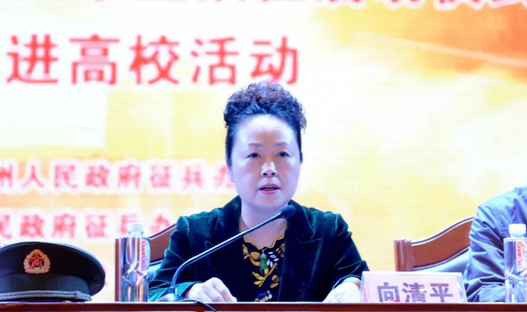向清平在讲话中对近年来湘西州出台的一系列拥军政策进行了介绍,并指出,强国强军需要新时代大学生,军旅生活特别能够锤炼人生崇高品德,并且党和政府十分重视军人保障工作。她号召莘莘学子携笔从戎,建功军营,表达了对投身军营的青年们承诺和期许。