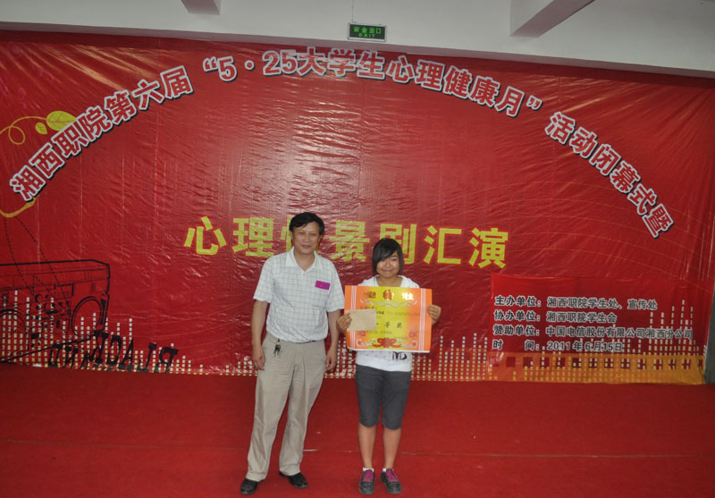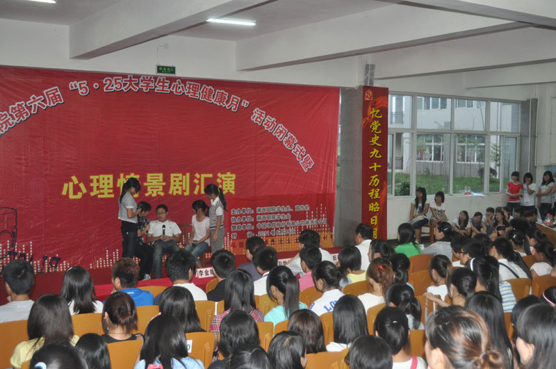 6 月15日 晚上,湘西职院第六届“5·25大学生心理健康月”活动闭幕式暨心理情景剧汇演在教学楼一楼大厅隆重举行,至此,为期一个多月的心理健康月活动圆满结束。