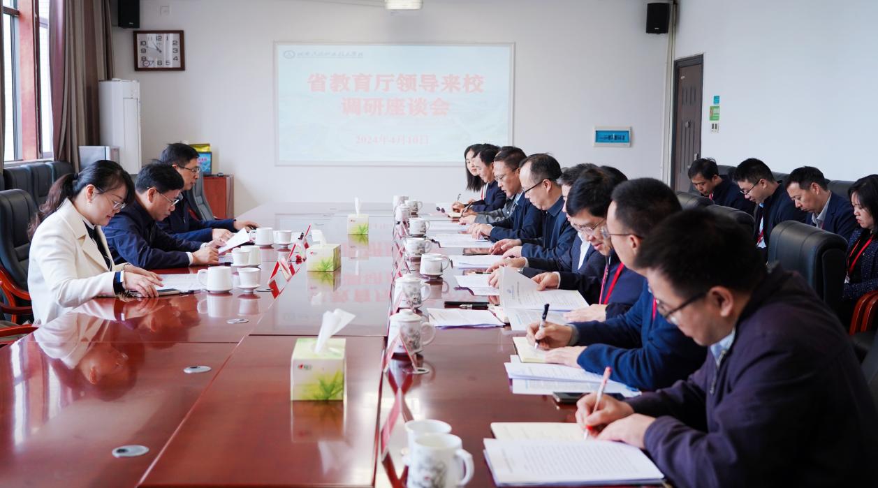 4月10日上午,湖南省教育厅副厅长王仁祥一行来到湘西民族职业技术学院调研,并召开座谈交流会。州委常委、州委政法委书记彭延敏,湘西职院党委副书记、校长翁波以及州教体局有关领导陪同调研。
