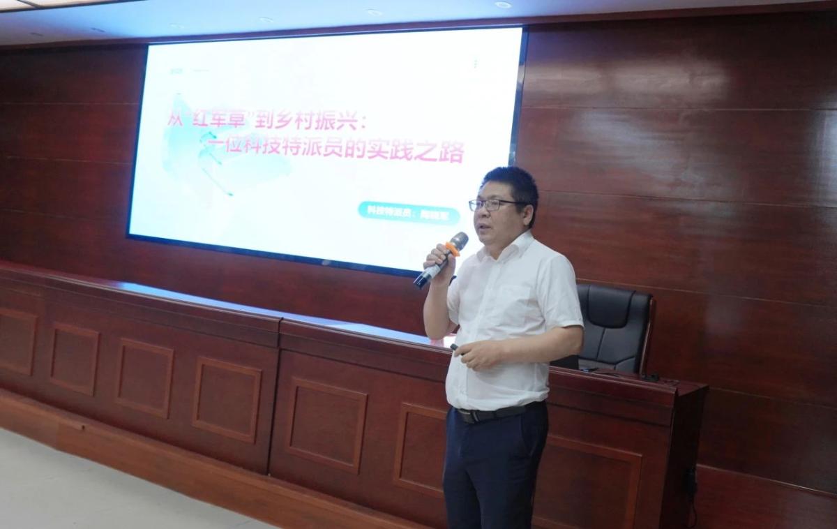 在优秀科技特派员分享环节,湖南师范大学陶晓军副教授则从案例实践、教育赋能等方面分享了《从“红军草”到乡村振兴:一位科技特派员的实践之路》的内容;省农科院罗先富研究员以《以科技之笔:绘就乡村振兴新画卷》为题,讲述了一位资深科技特派员深耕水稻领域,以科技助力乡村发展及国家粮食安全的经历;中南林业科技大学王森教授从一颗枣树的培养出发,围绕接受任务、坚守阵地、初见成效、心得体会四个方面做了分享。