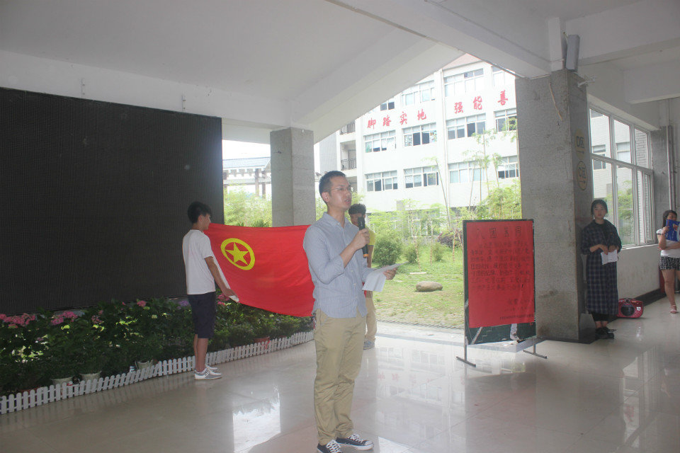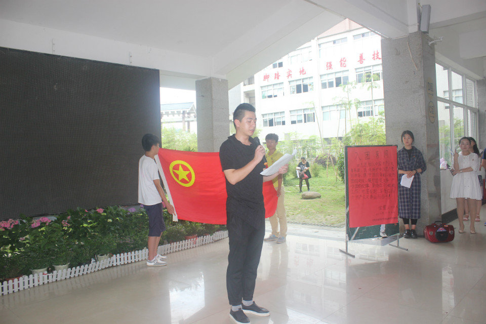 最后,院团委副书记欧阳杰对新入团的同学提出了三点希望:一是希望同学们树立远大理想,确立正确的人生观、世界观、价值观。二是希望同学们珍惜青春,发奋学习,积极进取。三是希望同学们不仅在组织上,更应该在思想上、行动上加入团组织,做同学们学习的好榜样。