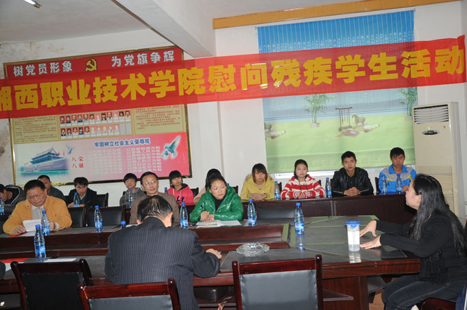 在第20个世界残疾日来临之际,11月29日,一场“关爱残疾人学生”座谈会在学院举办。湘西职院、州扶贫办、州残联等单位的领导与30名残疾人学生共同参加了座谈会。