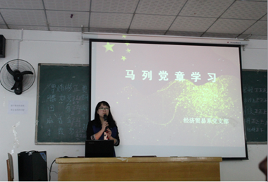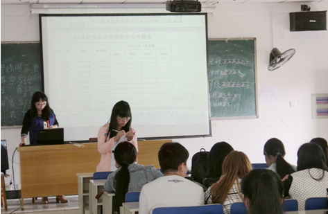 421下午,湘西职院教学楼B501春意盎然,济济一堂,经济贸易系马列党章学习小组本年度第一次集中学习正式拉开帷幕,参加学习的105名学员由经济贸易系入党积极分子、学生党员组成。