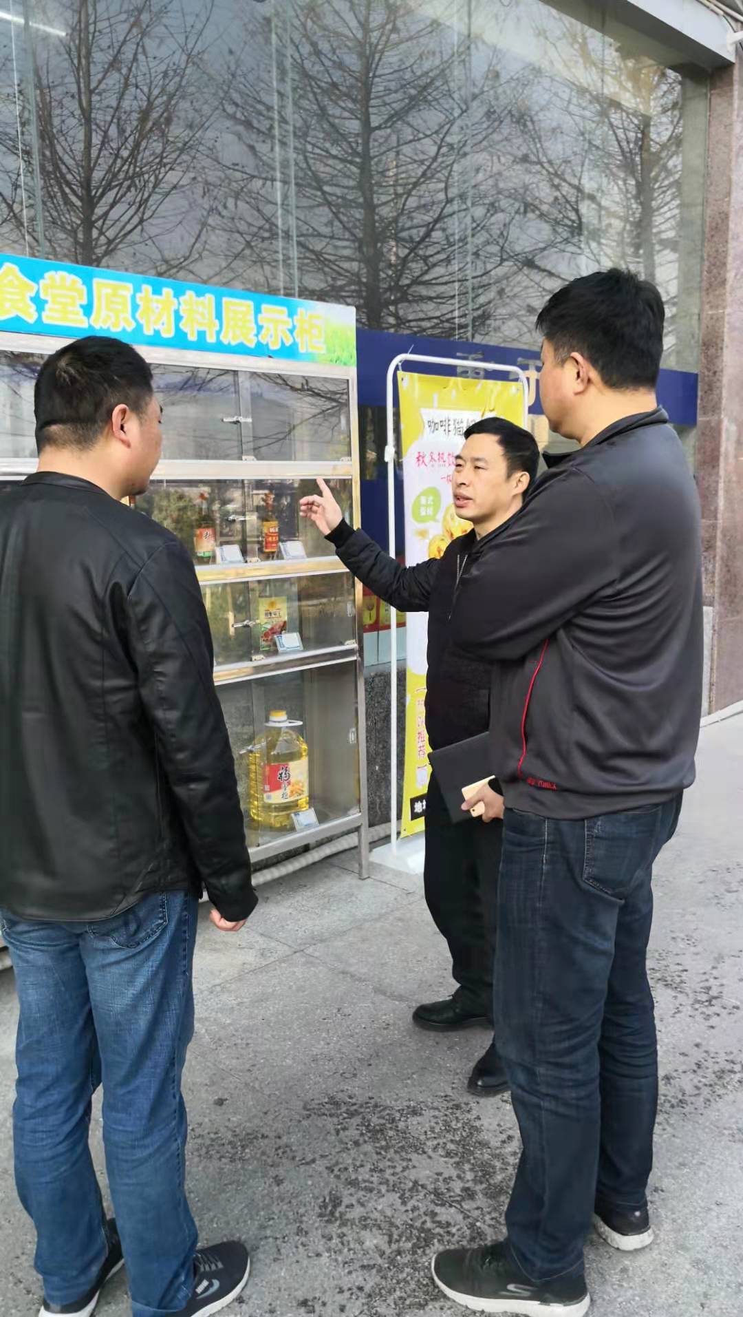 刘修洪等人首先来到学院第一、第二食堂现场检查食品加工、食品消毒、食品留样和食品储存等各个工作环节,然后专门驱车来到吉首市内,对学院大宗食品采购定点供应商大鹏粮油食品有限公司、吉首市永福粮油批发部等进行了实地考察和走访。