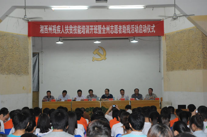 8月31日上午,由湘西职院、州残联、州扶贫开发办联合倡导和创办的湘西残疾人学历教育扶贫技能培训班在我院开班,同时还举行了全州志愿者助残活动启动仪式。州委常委、副州长吴彦承,我院副院长满益文出席仪式并讲话。仪式由学院党委副书记曹义文主持。