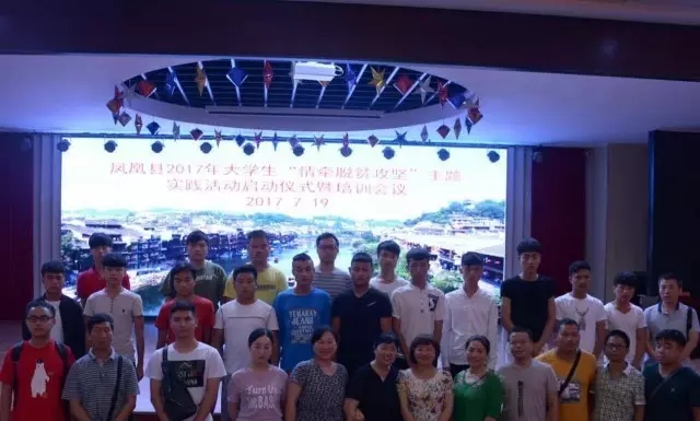 2017年7月19日上午8点半,学院选派的8支调研队参加了凤凰县扶贫办举行的2017年暑期大学生“情牵脱贫攻坚”主题实践活动启动仪式暨培训大会。凤凰县扶贫办就《贫困户基本情况表》、《调查问卷》、挂图作战图填制、公告公示宣传栏制作、乡镇及贫困村卷宗资料的收集与整理等工作进行了业务培训。凤凰县副县长周峻对下乡应完成的任务及应注意的事项作了详细说明,要求各乡镇和有关部门要高度重视,各负其责,为大学生驻村开展实践活动提供周到服务和便利条件,抓好后勤保障和协调服务,全力配合师生开展活动,确保活动平安、有序、有所成效的圆满完成。当天下午各调研组进驻到扶贫村,立即投入到紧张有序的工作中。