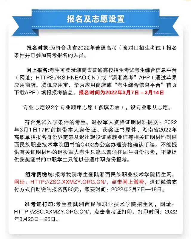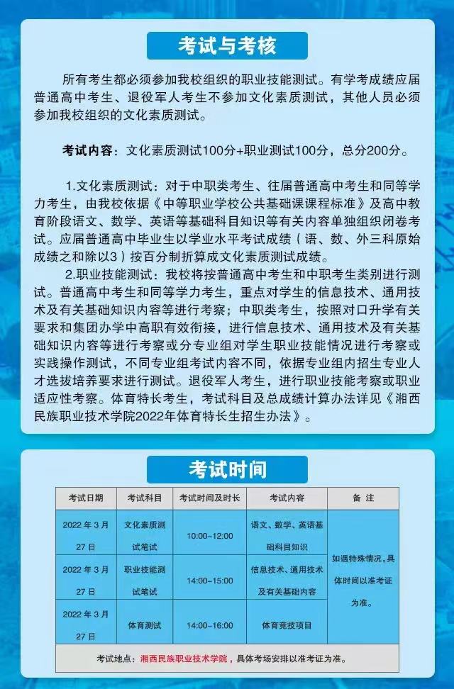湘西民族职业技术学院2022年单招简章