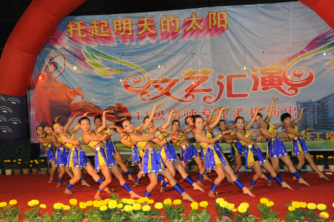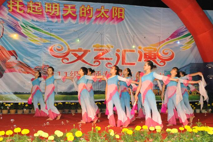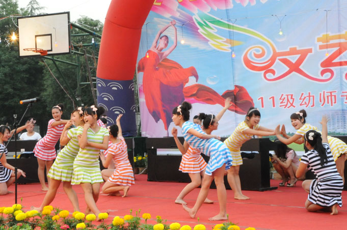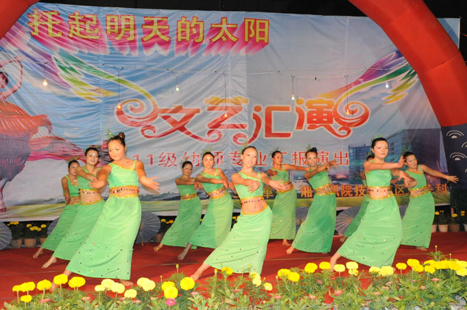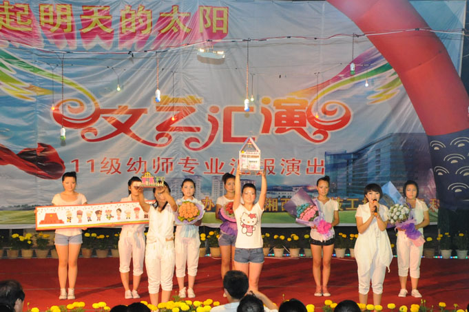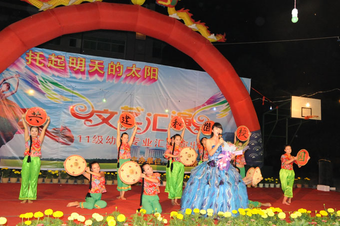 为展示我院幼师专业教学成果, 6 月20日 晚7时,学院在技工校区举办了2011级幼师专业文艺汇演。学院副院长杨建平与校区全体师生一同观看了演出。