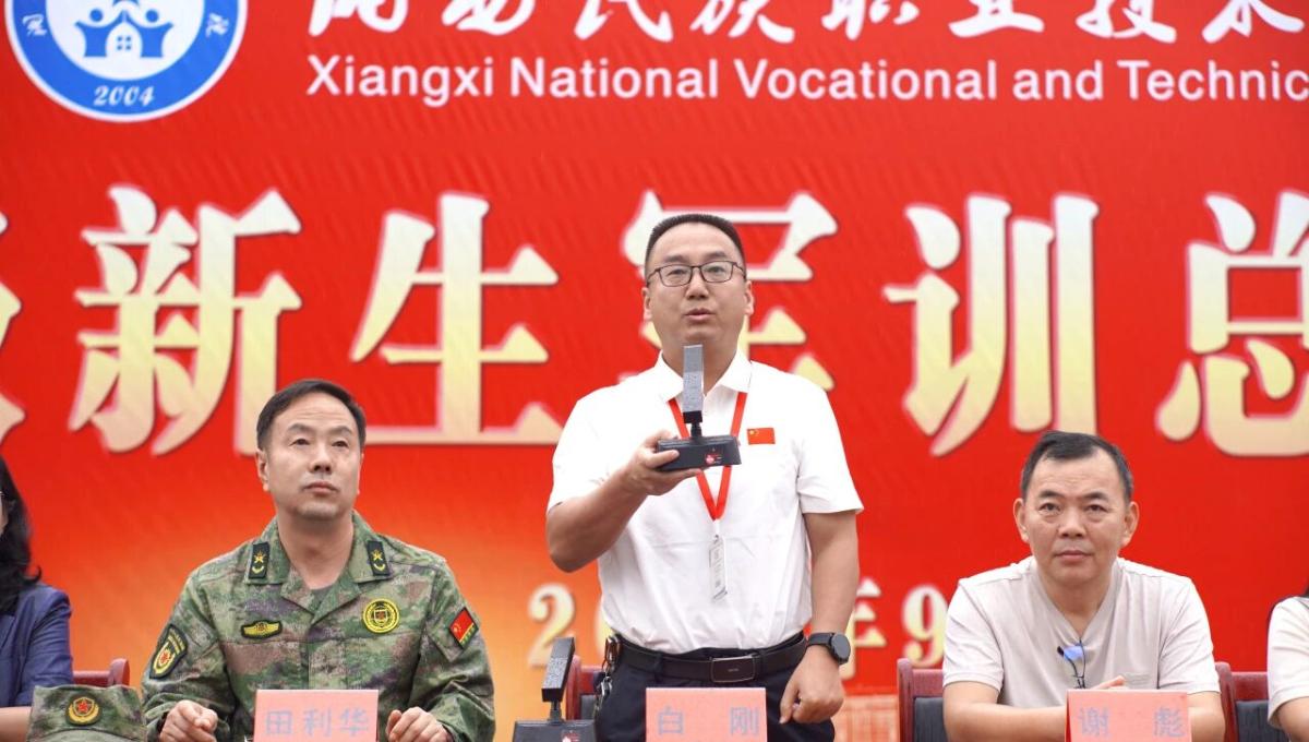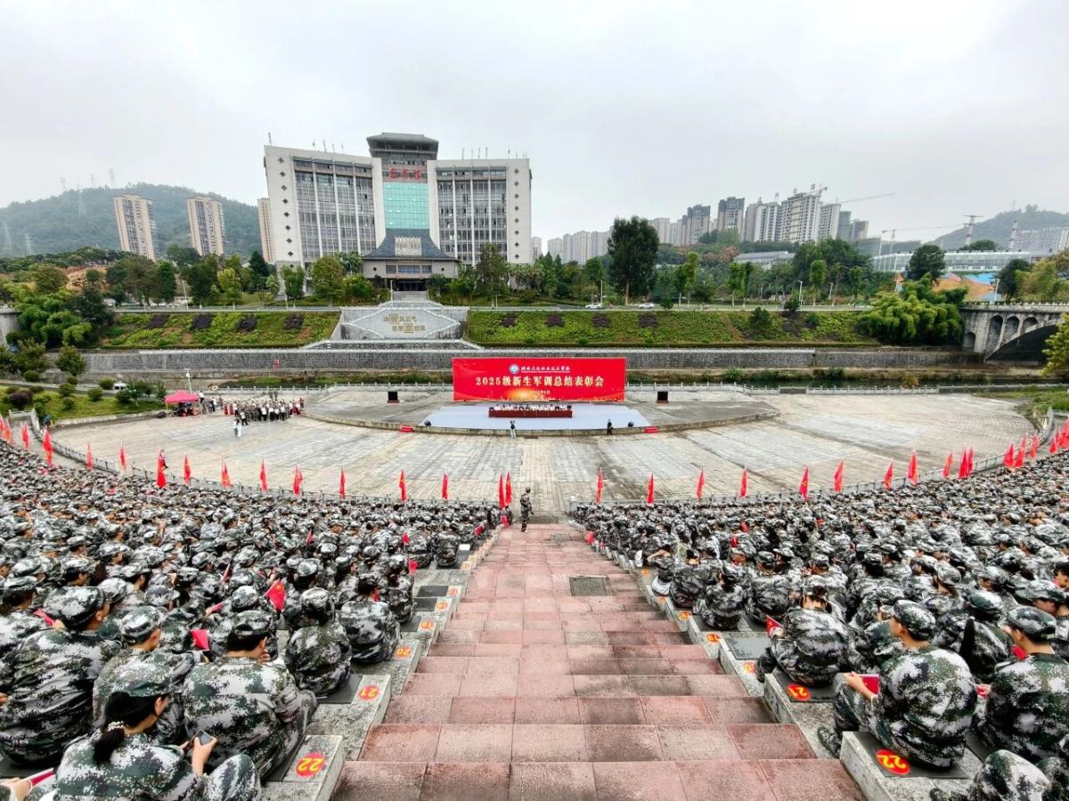 9月29日上午,我校2025级新生军训总结表彰大会在万溶江畔演艺广场举行。学校党委委员、副校长白刚,学生处处长谢彪、保卫处处长田利华、校团委书记田芳微出席本次表彰大会,各二级学院相关负责人、全体承训教官、辅导员及4000余名参训新生参加本次表彰大会。