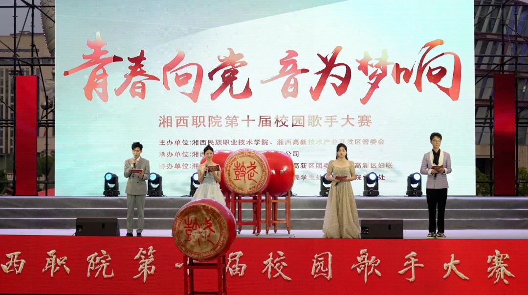 歌声嘹亮,音符飘扬,青春激荡,梦想起航。6月20日晚,湘西民族文化园西广场人声鼎沸,热闹非凡,由湘西职院联合湘西高新技术产业开发区管委会、吉投集团金湘玺文旅公司主办的“青春向党 音为梦响”湘西职院第十届校园歌手大赛收官之战在这里精彩上演。十位选手经海选、初赛、复赛脱颖而出,在这个盛夏的夜里一展歌喉。他们用歌声诠释青春的活力与激情,用旋律编织新生代的梦想与希望,献上了一场属于青年学子的音乐盛宴。