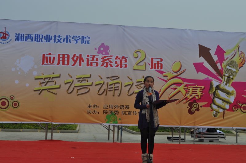 为营造良好的英语学习氛围,提高学生的英语口语表达能力,为学生提供展示自我的平台,1122日,学院第二届英语诵读比赛成功举办。共有30名同学参加了角逐。比赛由应用外语系主办,院团委、院宣传处协办。