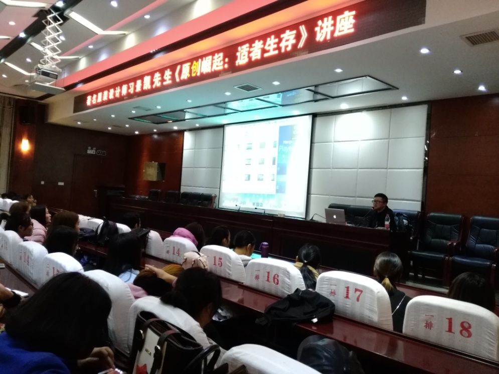11月22日,民族艺术系邀请全国十佳新锐著名服装设计师习景凯先生来我院为服装设计专业的师生们作了以“原创崛起:适者生存”为主题的讲座。民族艺术系专业教师、三年制大专、五年制以及即将毕业的服装专业学生共计百余人在D区会议室参加讲座。