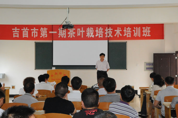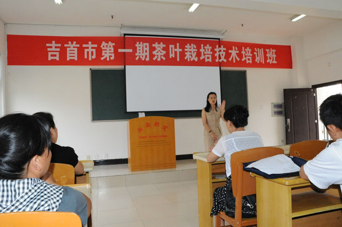 湘西地区山清水秀,生态环境独特,气候适宜茶叶生长,是茶叶生产最佳地区之一。目前,湘西的“古丈毛尖”、“保靖黄金茶”已成为中国名茶畅销国内外。吉首地区的茶叶种植和生产存在已久,茶叶品质久负盛名,所产茶叶闻之清香醇正,泡之清沏明亮,品之回味甘甜,深受市场欢迎。为了推广吉首茶叶种植,将吉首茶产业做大做强,吉首市利用湘西职院优质的教学资源,开办茶叶栽培技术培训班,通过培养茶叶生产技术人才,使之成为吉首地区茶产业开发的中坚力量,进而推动吉首地区茶产业发展,促进当地农民增收创收和脱贫致富。