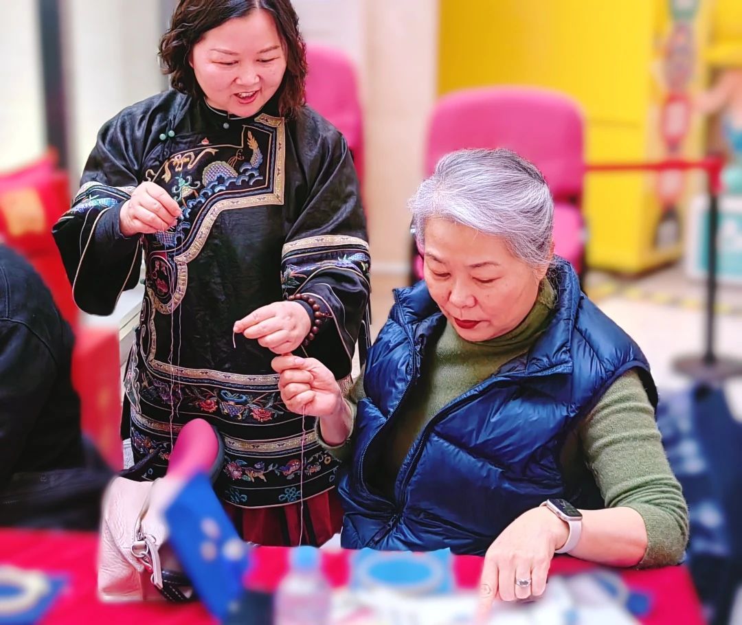 在春意盎然的3月15日,应湖南梦洁睡眠科技有限公司之邀,我校民族艺术学院非遗苗绣名师、工艺美术品专业领军人物黄娟教授,带着湘西苗绣这一民族文化瑰宝,踏入了北京市百货大楼。此次活动以 “非遗技艺进生活” 为主题,旨在将苗绣的深厚历史底蕴与独特艺术魅力全方位地展现给首都市民。