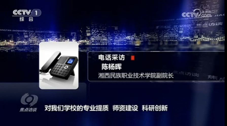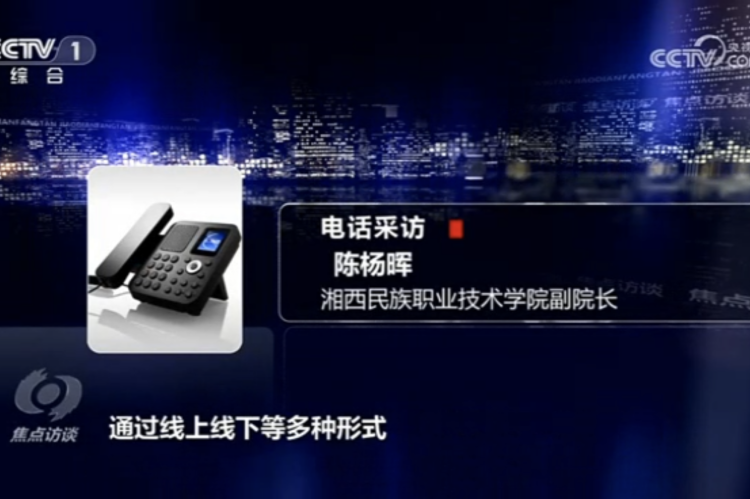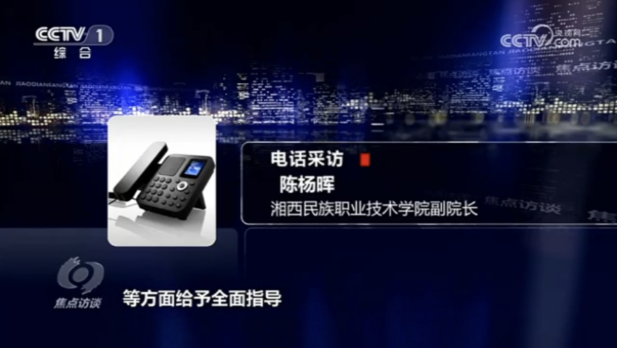 9月10日,正值第39个教师节,当晚的中央电视台“焦点访谈”在庆祝教师节专题节目中,深度解读教育部等十部门印发的《银龄教师行动计划》。湘西职院副院长陈杨晖8月30日接受中央电视台“新闻1+1”电话连线采访的内容再次出现在节目中,向银龄教师发出热情邀请。