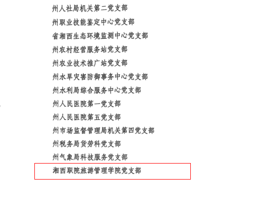 我校旅游管理学院党支部荣获州直机关“四强”党支部称号