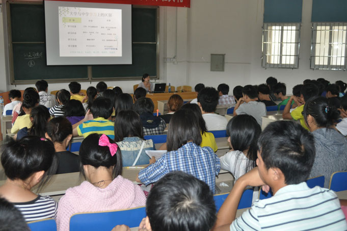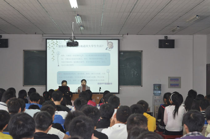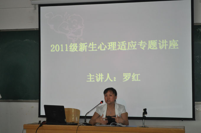 9 月8日 下午,我院党委委员、副院长罗红亲自为2011级部分大专生上了一堂题为“如何适应大学生活”的心理辅导课。