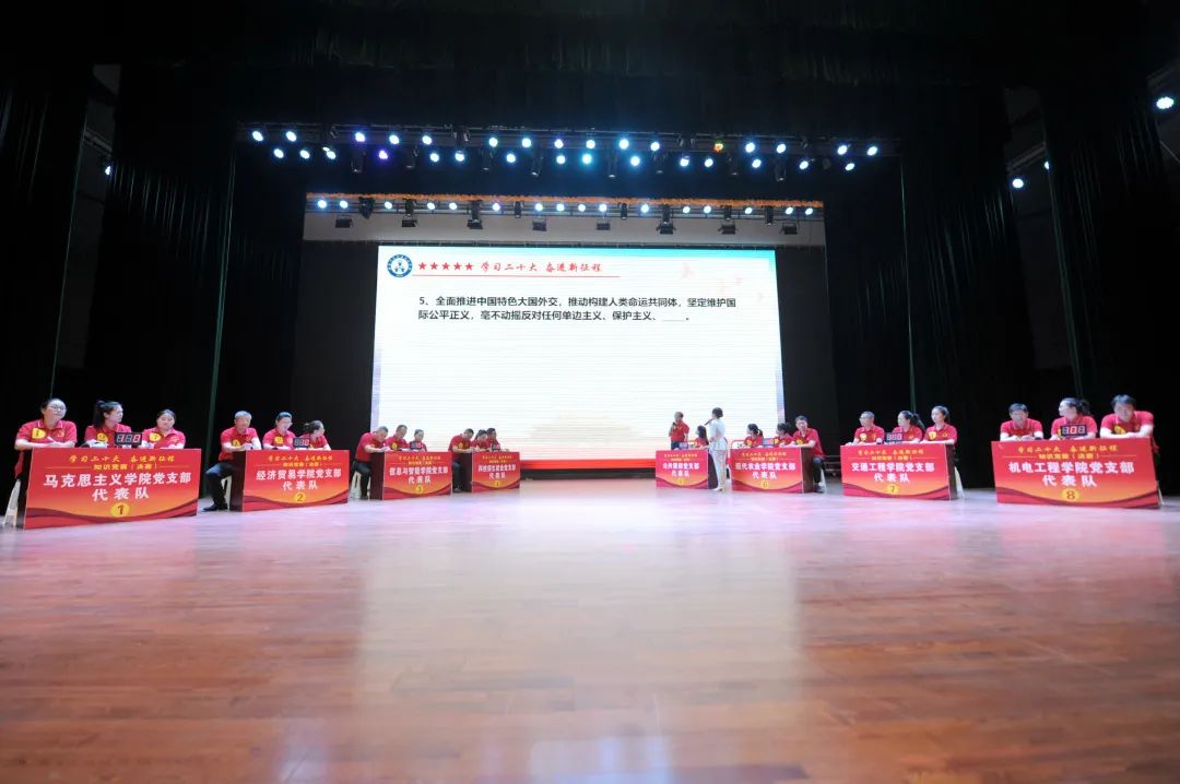 会前首先举行了“学习二十大 奋进新征程”知识竞赛决赛,从预赛中突围而出的8支以支部为单位的参赛队,以丰富的知识储备和精彩的临场发挥,展开了激烈的角逐。最终,交通工程学院党支部代表队以三轮210分总分夺得冠军。随后,全场参会人员共同起立,齐声合唱《团结就是力量》等经典红歌,用歌声为党的102周年生日庆祝。