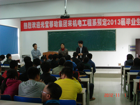 11月1日和2日,光宝移动集团和天能集团分别来到我院机电工程系举行专场招聘会,拉开了该系2013届毕业生就业工作的序幕。共有数控技术、模具技术和电力系统自动化等相关专业的近百名学生参加了此次招聘会。招聘会上,集团招聘主管分别用视频资料向前来应聘的毕业生介绍了公司的发展前景、招聘岗位及福利待遇等。经过双向选择,现场有近二十名同学与光宝移动集团达成就业意向,并参加了该集团的招聘考试及面试。专场招聘会结束后,集团招聘主管对我院学生较强的实践动手能力给予了高度评价,并表达了与该系建立长久校企合作关系的意愿。紧接着,上海闵原集团、美的集团压缩机事业部等单位也先后来该系洽谈了预订2013届毕业生有关事宜。