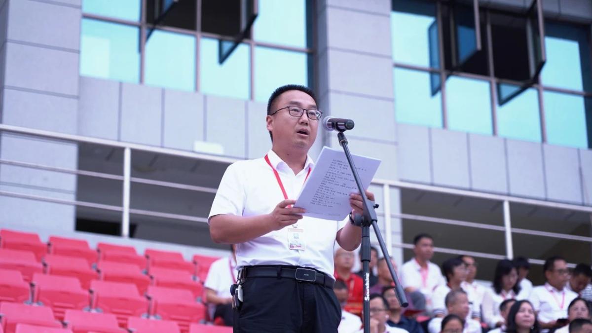 9月16日上午,我校2024级高职新生军训总结表彰会在学校体育场召开。校党委书记谢绍猛,党委副书记、校长翁波出席会议,党委委员、副校长陈杨晖主持会议。学校在家党委班子成员,各处室、部馆、中心负责人,二级学院班子成员、新生班级班主任和辅导员参加会议。