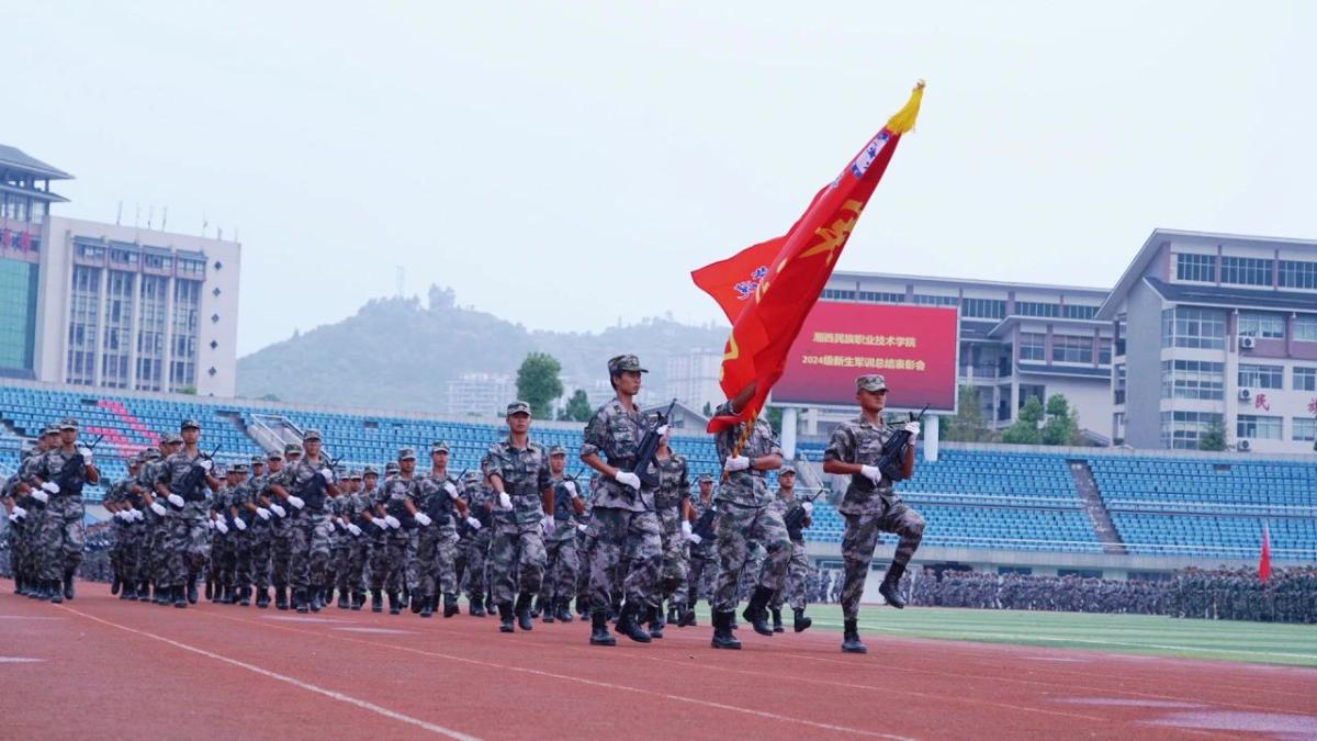 表彰会在升旗仪式中拉开帷幕。4000余名新生在教官们的带领下,精神饱满地列队在操场上。随后,教官、楚怡工匠班及八个二级学院方队进行了分列式表演,他们迈着整齐的步伐,喊着响亮的口号,雄赳赳气昂昂地从主席台前经过;新生代表带来了擒敌拳、刺杀操、匕首操、捕俘拳等军事动作演练,为师生们进行了军训成果展示;教官们则带来了精彩的战术动作实战表演,向师生们展现了他们过硬的军事素养。