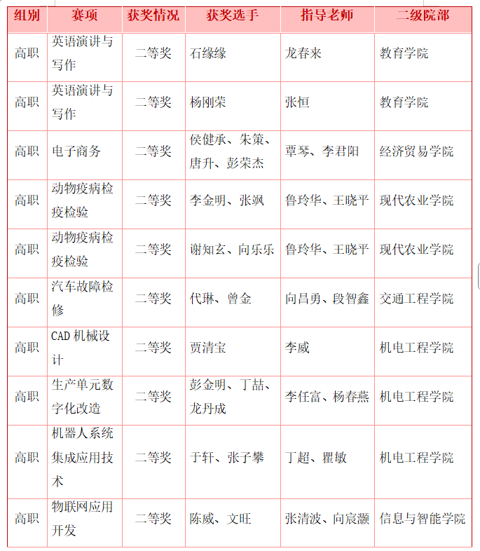 本次竞赛我校共参与33个赛项,32个赛项成功获奖,获奖数量与质量均创历史新高。优异成绩的取得,充分彰显了学校坚持以赛促教、以赛促学、以赛促改的扎实成效,生动展现了学校过硬的办学实力、显著的人才培养成果,以及师生追求卓越的专业素养与昂扬向上的竞技风貌。