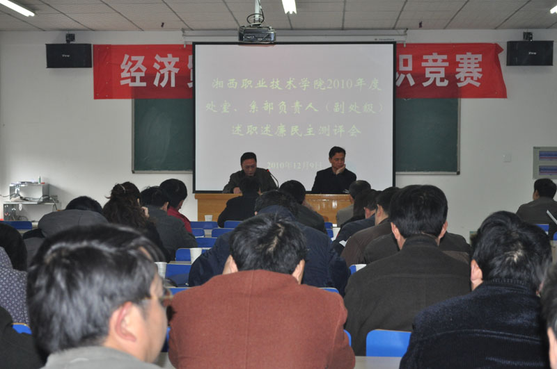 12 9 下午,我院中层干部述职述廉民主测评会在党员活动室举行。会上,18名副处级中层干部就工作完成、廉洁自律及履职情况等进行了述职述廉,学院56名副科级以上干部参加了会议,并对述职述廉的人员进行了民主测评。