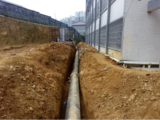 四月中旬以来,学院后勤管理处全面启动了新校区自来水主水管提质扩容改造工程。自工程动工以来,相关负责人切实加大工作力度,加班加点,积极推动改造工程有序进行。目前,整个工程进展顺利,已进展到水管架设环节,预计五月底可投入使用。