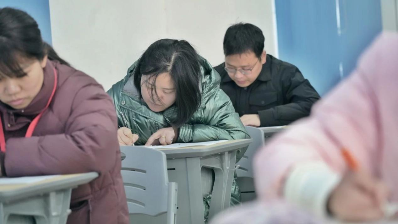 钢笔字比赛中,老师们全神贯注伏案书写,一横一竖、一撇一捺,字迹工整流畅,笔笔显功力、字字现神韵,将平日的练字成果尽展于此,书法之美跃然纸上。