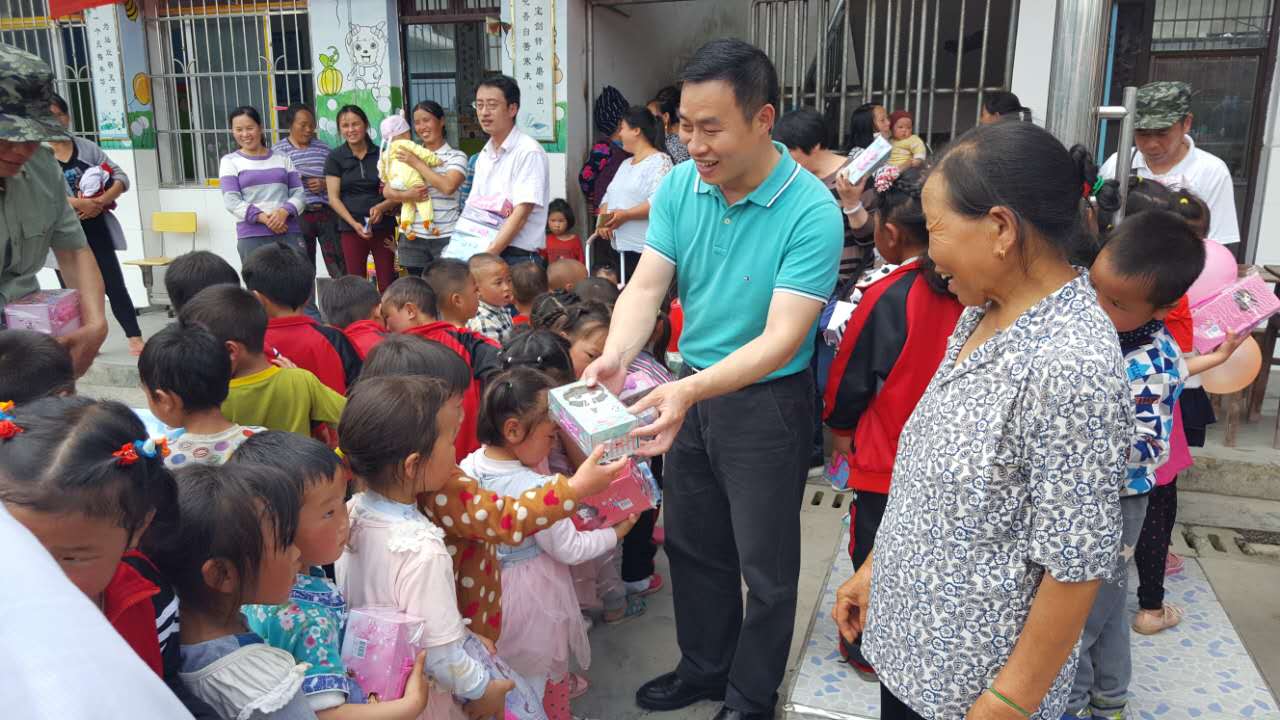 在苏马河村天半小学,刘修洪代表学院党委为学生们送上了节日的慰问,为他们带来了学习、体育等用品,并祝愿他们学习进步,身体健康。
