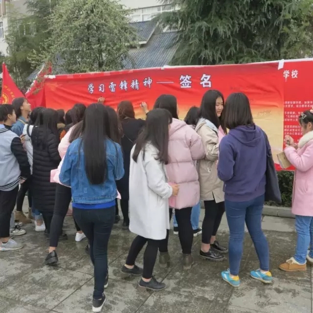 思政部将其作为一次重要的实践教学活动,29个班级的1200余名学生在思政课老师的组织下,分成4个批次,井然有序参加了活动。在讲解员的讲解和引导下,大家认真观看了每一幅展板的内容。雷锋同志的光荣事迹通过一幅幅图片、一段段文字的展现,加深了大家对雷锋同志的了解,使大家对雷锋精神有了更全面的理解。观看结束后,师生纷纷在签名牌上签上自己的名字,表达对雷锋同志的敬仰,誓做雷锋精神传人。
