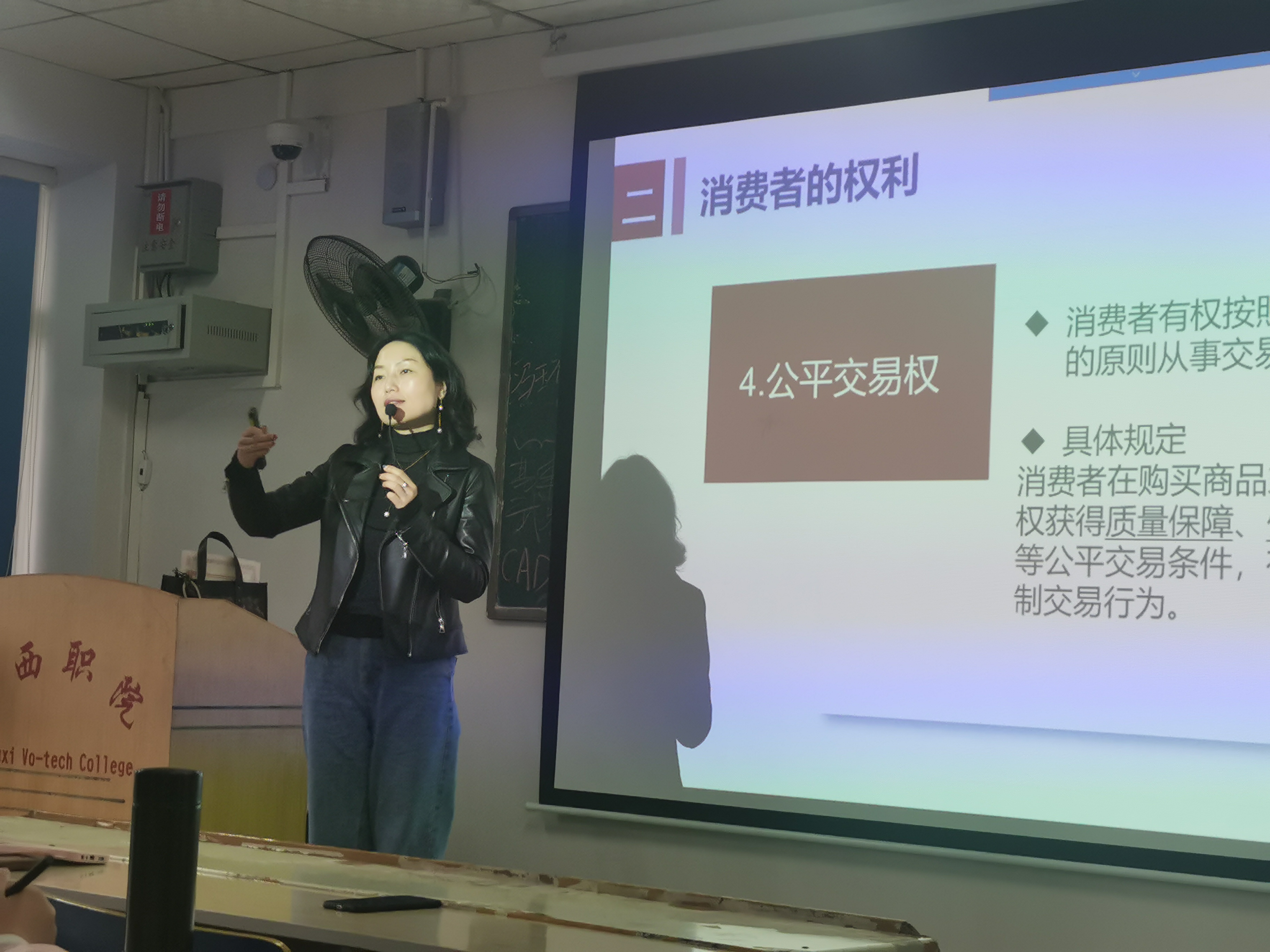 立足新时代,引导新维权。思政部围绕“新时代·新征程·新维权”以民法典与消费者权益保护关系,涉及民事行为能力、合同、物权、人格权、侵权责任等诸多与消费者权益密切相关的内容,主持开展了《民法典》消费者九大基本权利进课堂活动。