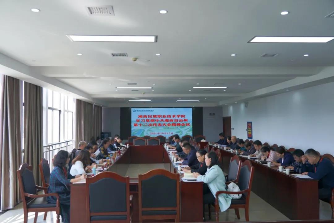 10月12日下午,学院组织全体副处级以上干部和处室系部负责人,开展了学习贯彻州第十二次党代会精神会议。学院党委书记谭吉慧主持本次学习并作具体要求部署,学院党委副书记、院长彭延敏对州第十二次党代会报告进行了传达和解读,院纪委书记张显好对湘西州纪委工作报告进行了传达和解读。