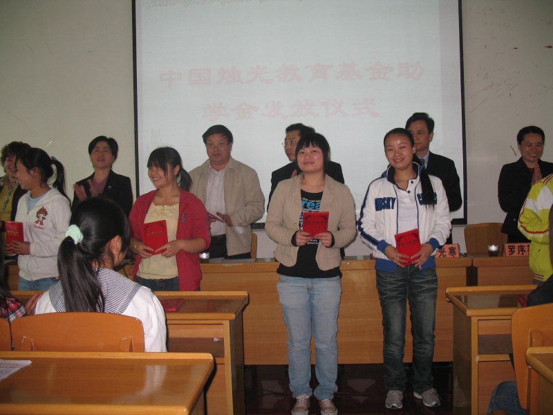 4月17日,州委常委、副州长陈潇和州妇联相关人员来到我院,将中国烛光教育基金会捐助的2万余元助学金,发放到品学兼优的贫困学生手中。