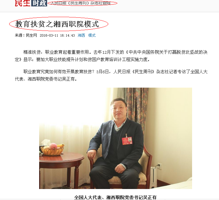 教育扶贫之湘西职院模式——人民日报《民生周刊》专访全国人大代表、湘西职院党委书记吴正有