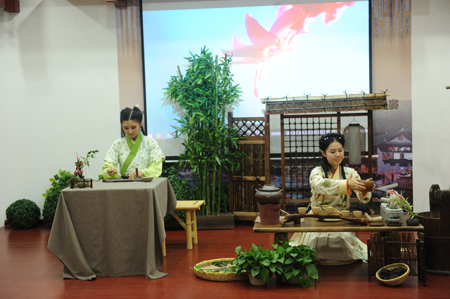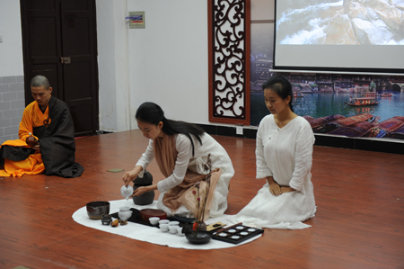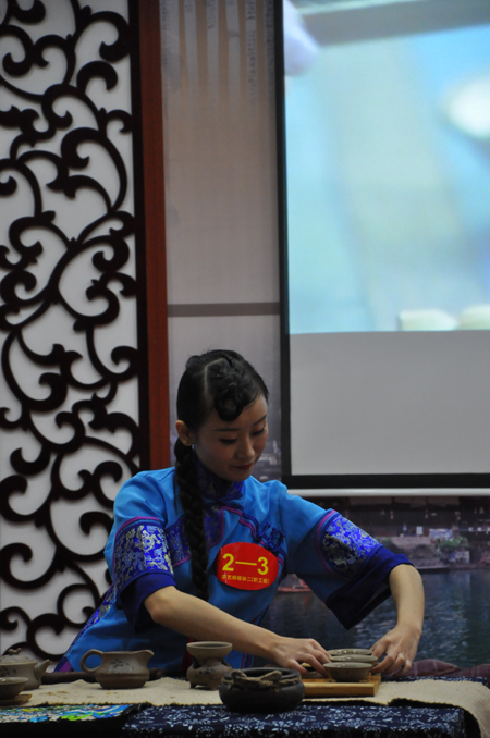 只见选手们有的配以茶道等茶文化诗歌朗诵,有的则配以轻慢的舞蹈,她们举手投足间是那么的轻盈柔美,全然不见竞技场上的激烈比拼。这样的创新茶艺使人享受到了无穷的茶趣,给评委和现场观众带来一场民族茶文化的视觉盛宴,不时赢得评委和在场观众们的阵阵掌声。