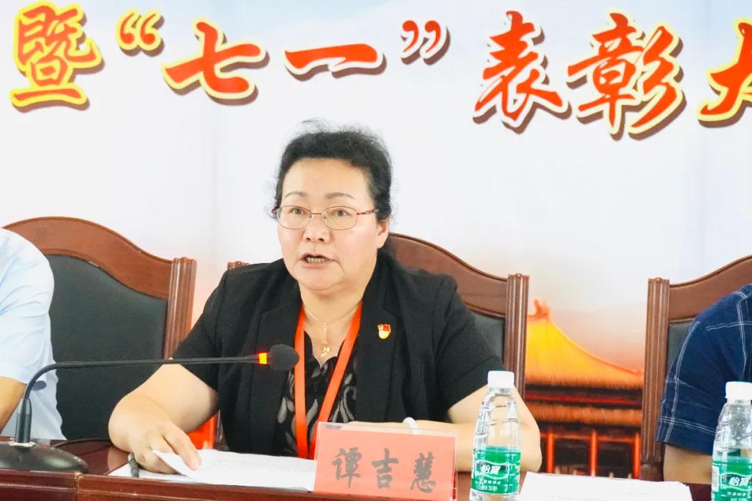最后,谭吉慧作讲话。她指出,中国共产党历经九十九载风雨洗礼,一代又一代中国共产党人前赴后继,以舍我其谁的使命担当和力挽狂澜的豪迈气魄,用鲜血和生命挺起了中华民族的坚强脊梁,实现了民族解放、国家独立、社会进步和人民幸福,使中华民族迎来了从站起来、富起来到强起来的伟大飞跃。在这一伟大历史进程中,中国共产党人始终不忘初心、牢记使命,在各条战线团结带领人民群众艰苦奋斗、克难奋进。在不久前突如其来的新冠肺炎疫情中,党中央充分发挥了党的坚强领导核心作用,各基层党组织充分发挥了战斗堡垒作用,各级领导干部充分发挥了模范带头作用,共产党员充分发挥了先锋模范作用。这些都体现了我们党一贯奉行的人民利益高于一切的以人为本的执政兴国理念,彰显了民族精神和时代精神相统一的伟大抗疫精神,展现了以习近平同志为核心的党中央的坚强领导、中国特色社会主义制度的强大动员力和无比优越性。在这次抗疫斗争中,湘西职院各级党组织和全体党员干部坚决贯彻中央决策部署,充分发挥战斗堡垒和先锋模范作用,在守好“责任田”的同时,也以实际行动支持全国抗疫斗争,诠释了国家的需要就是我们的责任。