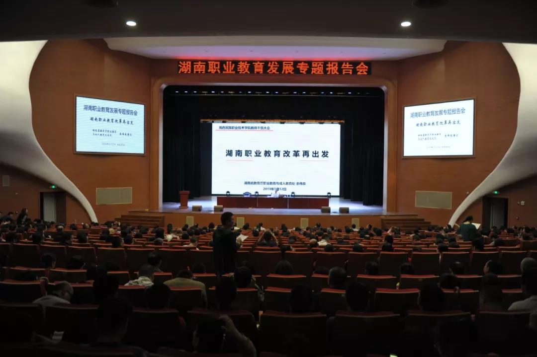 12日晚,省教育厅职成处处长余伟良为湘西职院全体干部职工作了职业教育发展专题报告,他以“湖南职业教育改革再出发”为题,围绕“湘西民族职业技术学院—武陵山区明珠、脱贫致富中坚”“ 湖南职业教育在全国的品牌是什么”“ 湖南职业教育的主要短板是什么”“ 湖南职业教育改革发展的道路与方向”“ 建立以产业为主导的职业教育体系”等五个方面对湖南职业教育的改革与发展进行了全面解读。