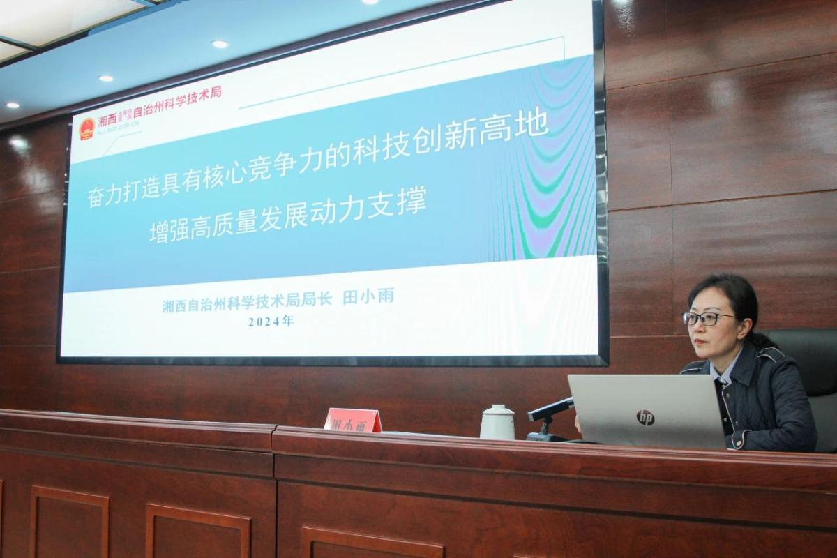 最后,州科技局局长田小雨以《奋力打造具有核心竞争力的科技创新高地增强高质量发展动力支撑》为题,介绍了国内外科学研究的现状、我州科学研究的发展状况,同时还介绍了国家、省、州各级在科学研究方面的方针政策,表明了我们国家科技强国的决心以及我州在科学研究方面的信心。