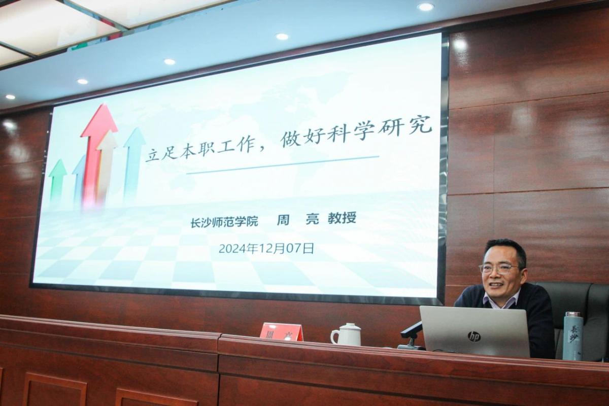 下午,湖南省儿童健康促进科技创新团队负责人周亮教授以《立足本职工作,做好科学研究》为主题,从为什么要开展科学研究、可以开展哪些科学研究、如何有效开展科学研究三个方面进行了阐述,并点出了职业院校老师科学研究的现状及困惑,为我校从事科研的老师提供了方向和思路。