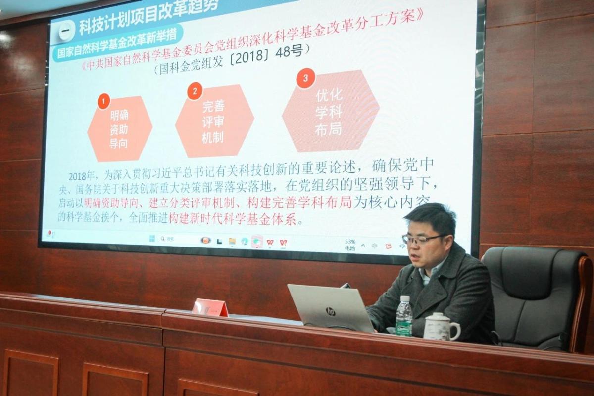 湘潭大学化工学院胡夏一教授的《科技创新计划项目申报交流》主题讲座,从科技项目改革趋势、科技项目的评审流程、项目资料的填报事项以及自然科学基金项目申报交流四个方面讲述了目前国家级、省部级科研基金项目的申报、评审细节,点明了各个评审环节的关键之处,指出了评委专家在评审过程中看重的内容要义,以及如何让申报书击中评委的内心。